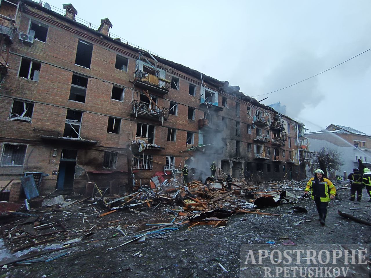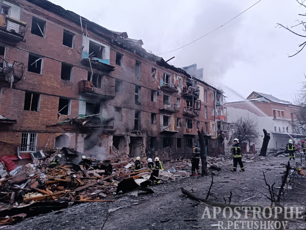 Російські окупанти під час чергового масованого ракетного удару 23 листопада повністю знищили дві п'ятиповерхівки у Вишгороді Київської області.