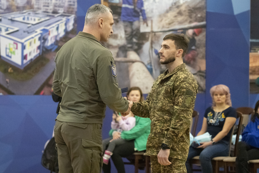 Мер Києва Віталій Кличко в День Збройних Сил України привітав військовослужбовців та вручив медалі "Честь. Слава. Держава" в столичній мерії.