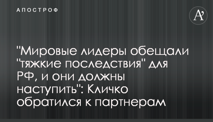 "Війна з Росією це битва між добром і злом. Скільки ще світ буде спостерігати? Напередодні широкомасштабного російського вторгнення в Україну, світові лідери обіцяли РФ "тяжкі наслідки" за такі дії. Після геноциду, який вчинили російські орки в Бучі, Ірпені, Гостомелі, Бородянці і який вони продовжують на тимчасово окупованих територіях, після буквального знищення багатьох українських міст та селищ, "тяжкі наслідки" вже мали б настати", - сказав Володимир Кличко.