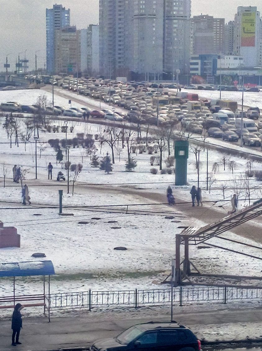 У суботу, 25 грудня, у Києві у Дарницькому районі утворилися величезні пробки. Швидше за все мешканці столиці масово вирушили на передноворічний шопінг.
