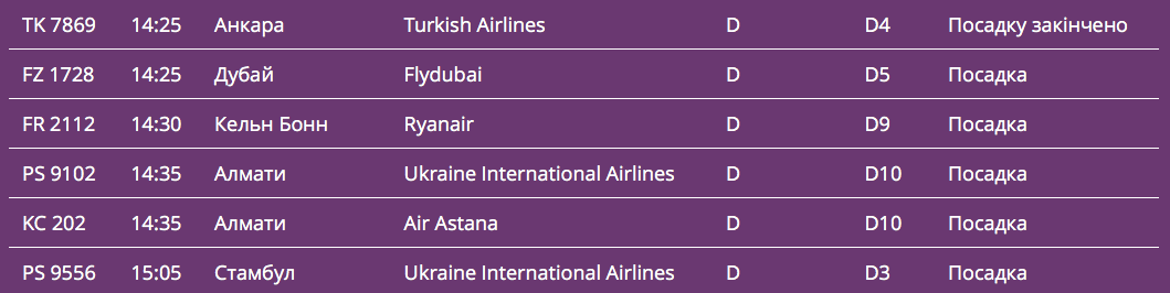 Згідно з електронним табло "Борисполя", авіакомпанії продовжують здійснювати рейси за всіма запланованими напрямками.