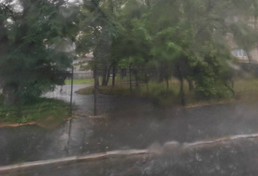 Серйозно дощило, зокрема, у Солом'янському районі Києва. Користувачі Facebook поділилися фото, знятим у спальному районі Відрадний.