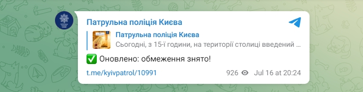 "Оновлено: обмеження знято!", - йдеться у повідомленні.