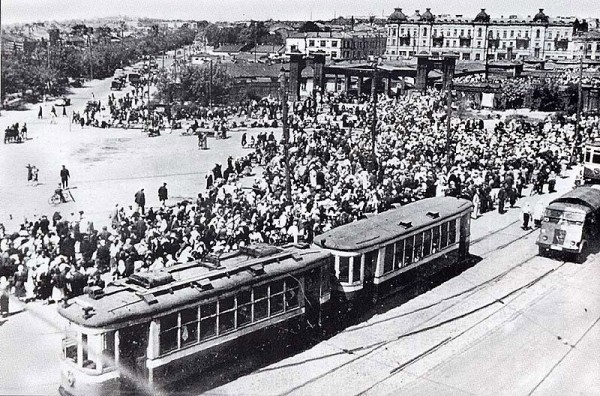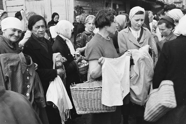 Тому далі "Апостроф", посилаючись на матеріали Клубу Корінного Киянина, зібрав атмосферні фото столичного Євбазу 1940-х років минулого століття.