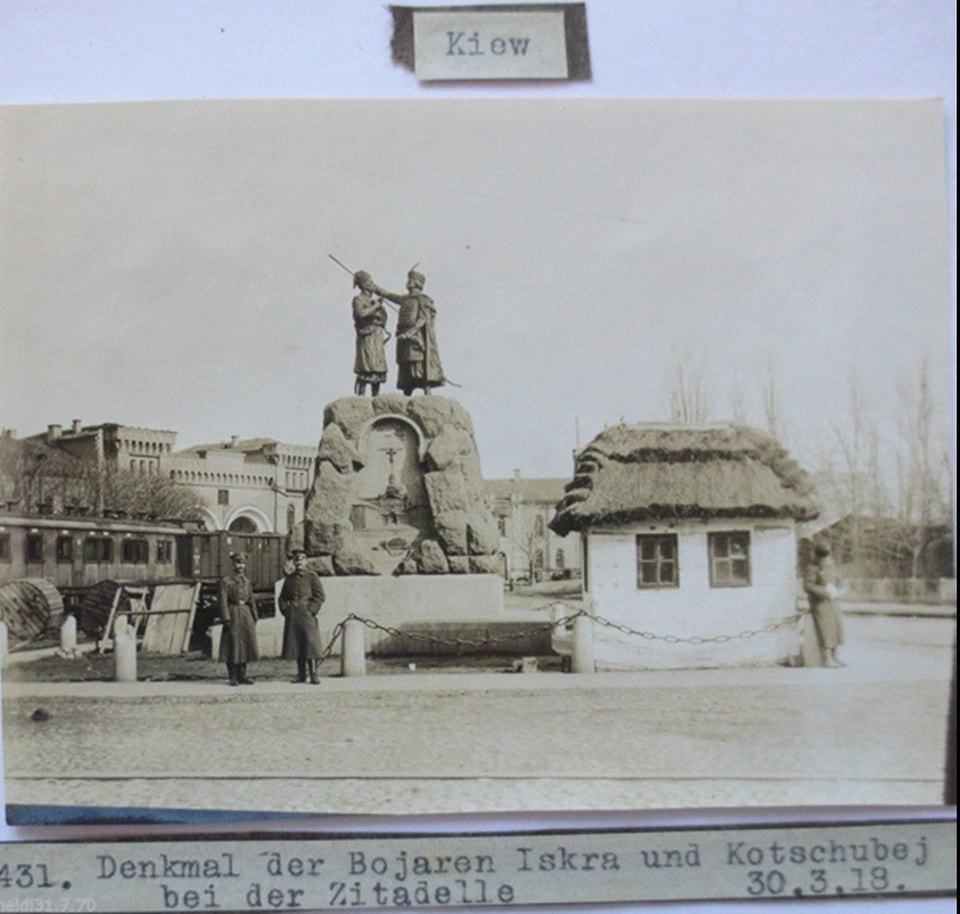 На даних кадрах німецького фотографа можна побачити пам'ятник козацькому отаману Івану Іскрі та генеральному писарю Війська Запорозького, генеральному судді Василю Кочубею, а також вид на Дніпро, Андріївський узвіз та Подол.