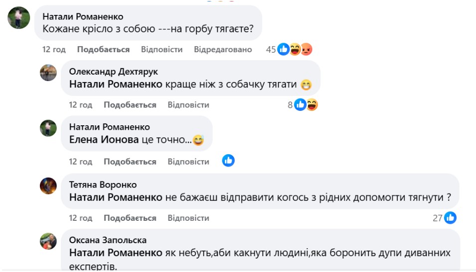 "Кожане крісло з собою на горбу тягаєте?", - запитала одна з коментаторок.