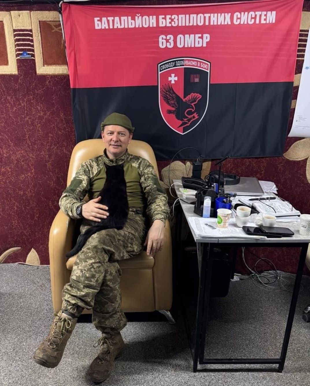 Колишній народний депутат України, а нині командир батальйону безпілотних систем 63-ї ОМБр Олег Ляшко викликав питання своїм фото у шкіряному кріслі.