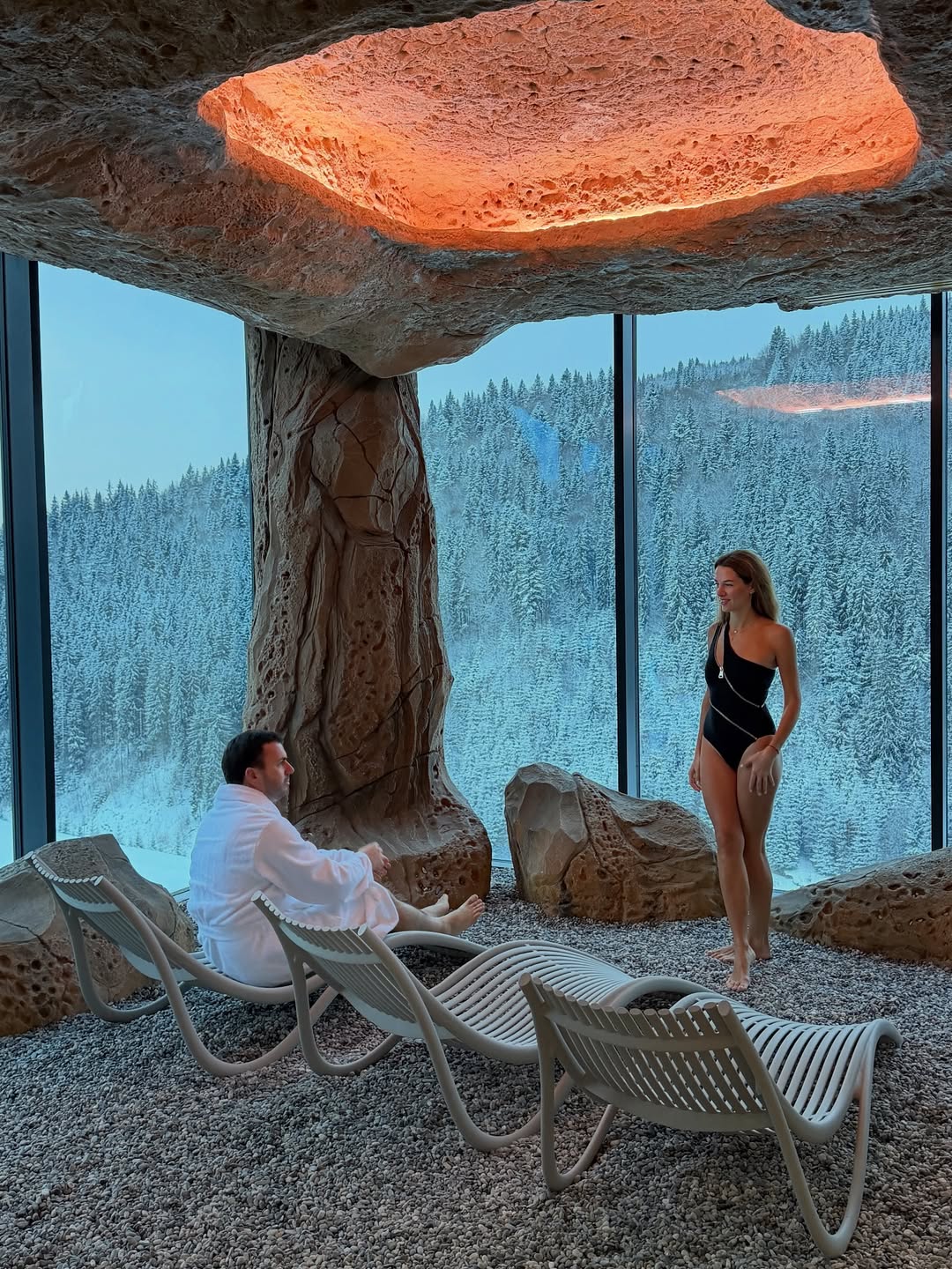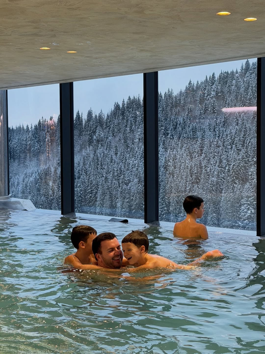 Сім'я відпочивала у спа-готелі з панорамними вікнами, звідки відкривався мальовничий краєвид на гори. Тоді Христина наробила фотографій у купальнику і зараз вирішила поділитися приємними митями з підписниками.