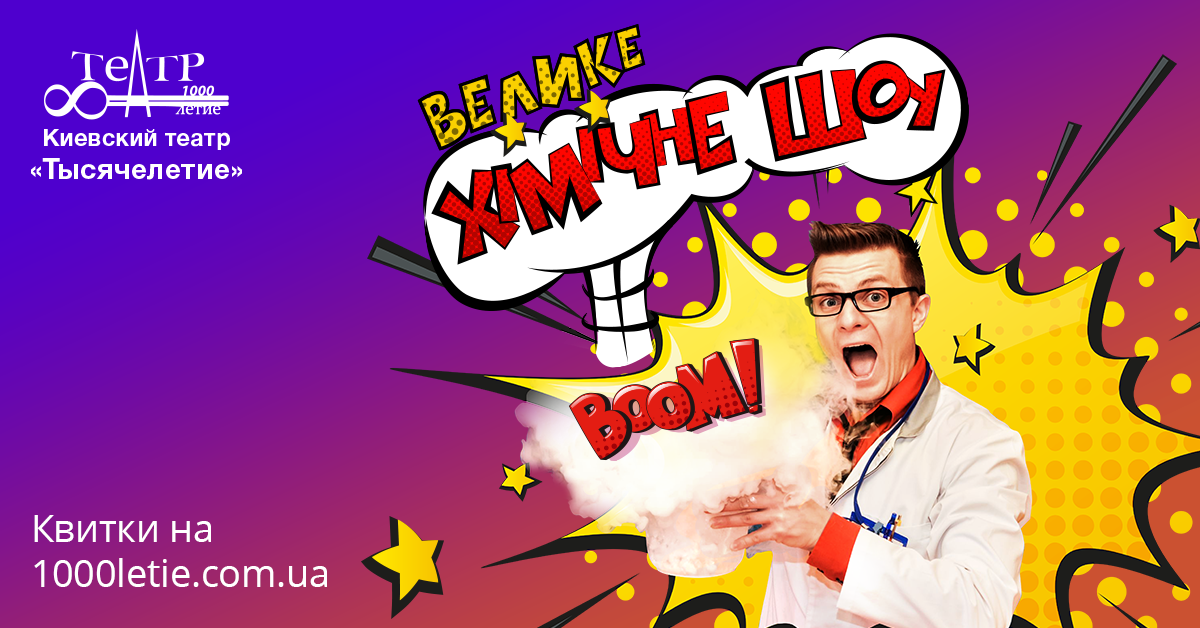 Якщо Ви шукаєте пізнавальні, цікаві та захоплюючі події для своєї дитини, тоді обов'язково відвідайте Науково-розважальне ВЕЛИКЕ ХІМІЧНЕ ШОУ для дітей - від Київського театру "Тисячоліття"!