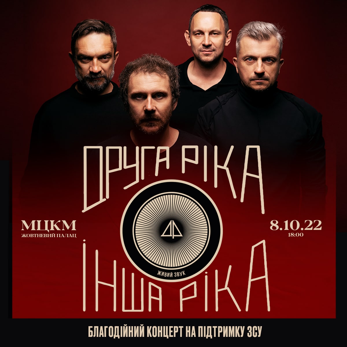 8 жовтня у київському МЦКМ "Жовтневий Палац" відбудеться благодійний акустичний концерт українського рок-гурту "Друга Ріка". Виступ пройде у рамках туру "Інша Ріка", який було зупинено через повномасштабне вторгнення росії в Україну.Частина зібраних коштів буде направлена на підтримку ЗСУ.