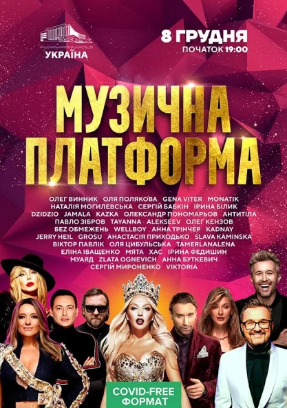Щоб потрапити на концерт "Новорічна Музична Платформа" в Києві, купуйте квитки на нашому сайті та в касах міста. Ще більше концертів в афіші Києва шукайте на нашому сайті.