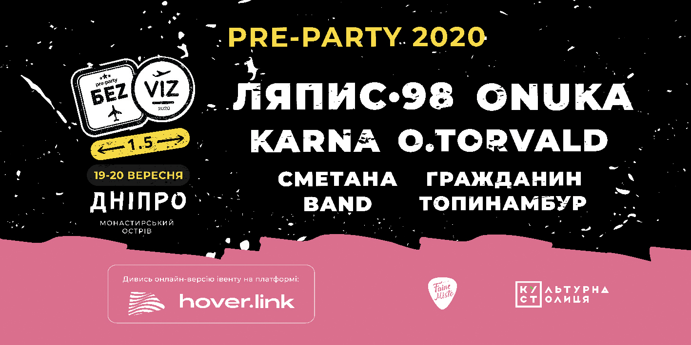 19-20 вересня у Дніпрі та Києві відбудеться дводенна вечірка "БеZVIZ Pre-party 1.5", яку організовує один із найбільших українських музичних фестивалів БеZVIZ Festival. Захід одночасно буде проходити у двох містах, а також транслюватиметься онлайн на інтерактивній платформі Hover.link. Кількість квитків обмежена – придбати їх можна на сайті.