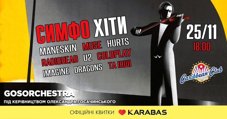 Симфонічний оркестр GosOrchestra під керівництвом Олександра Госачинського зіграє нову програму "Симфонічні Хіти". Гості вечора зможуть насолодитися особливим виконанням пісень Maneskin, Muse, Hurts, Radiohead, U2, Imagine Dragons та багатьох інших. GosOrchestra запрошують провести з ними час в затишному Caribbean Club, де будуть зіграні знайомі мелодії в новому виконанні.