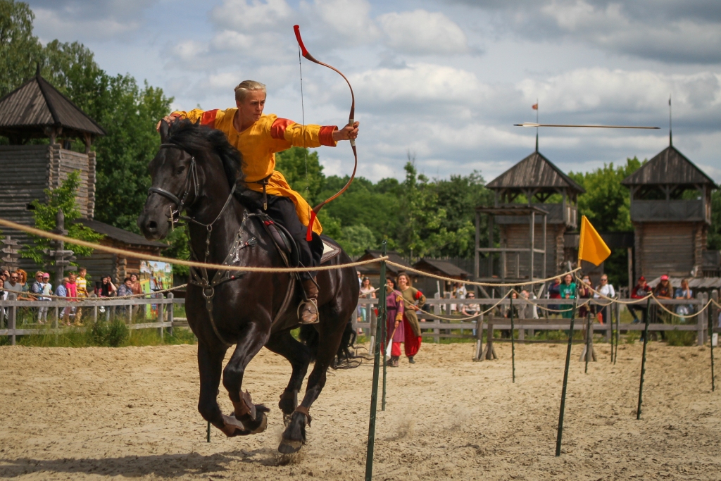 12 і 13 вересня на ристалищі пройде також захоплююче дійство, що не залишить байдужим ані дітей, ані дорослих. Гості побачать кінні роз'їздки та парад княжих прапорів. Тільки в Древньому Києві можна буде побачити стрільбу з лука верхи на коні, а ще – масову кінну атаку. Досвідчені вершники стрілятимуть у кілька мішеней, а на завершення - в живу людину, одягнену в лати.