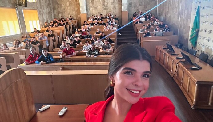 "Про що я мрію: провести з Вами якусь спільну передачу. І Ви незаміжня, да? І користуючись нагодою, запросити Вас в проєкт "Холостячка". А, хоча є проблема: ми і красивих, і розумних не беремо. Але, в принципі, все має свій виняток. Тому Вас візьмемо, обов"язково", – заявив ведучий.
