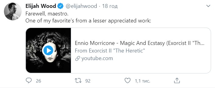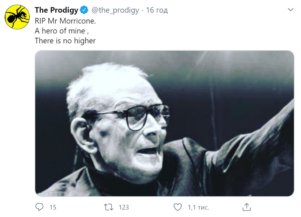 "Спочивай з миром, Морріконе. Мій герой. Більшого немає" (Ліам Хоулетт, The Prodigy )