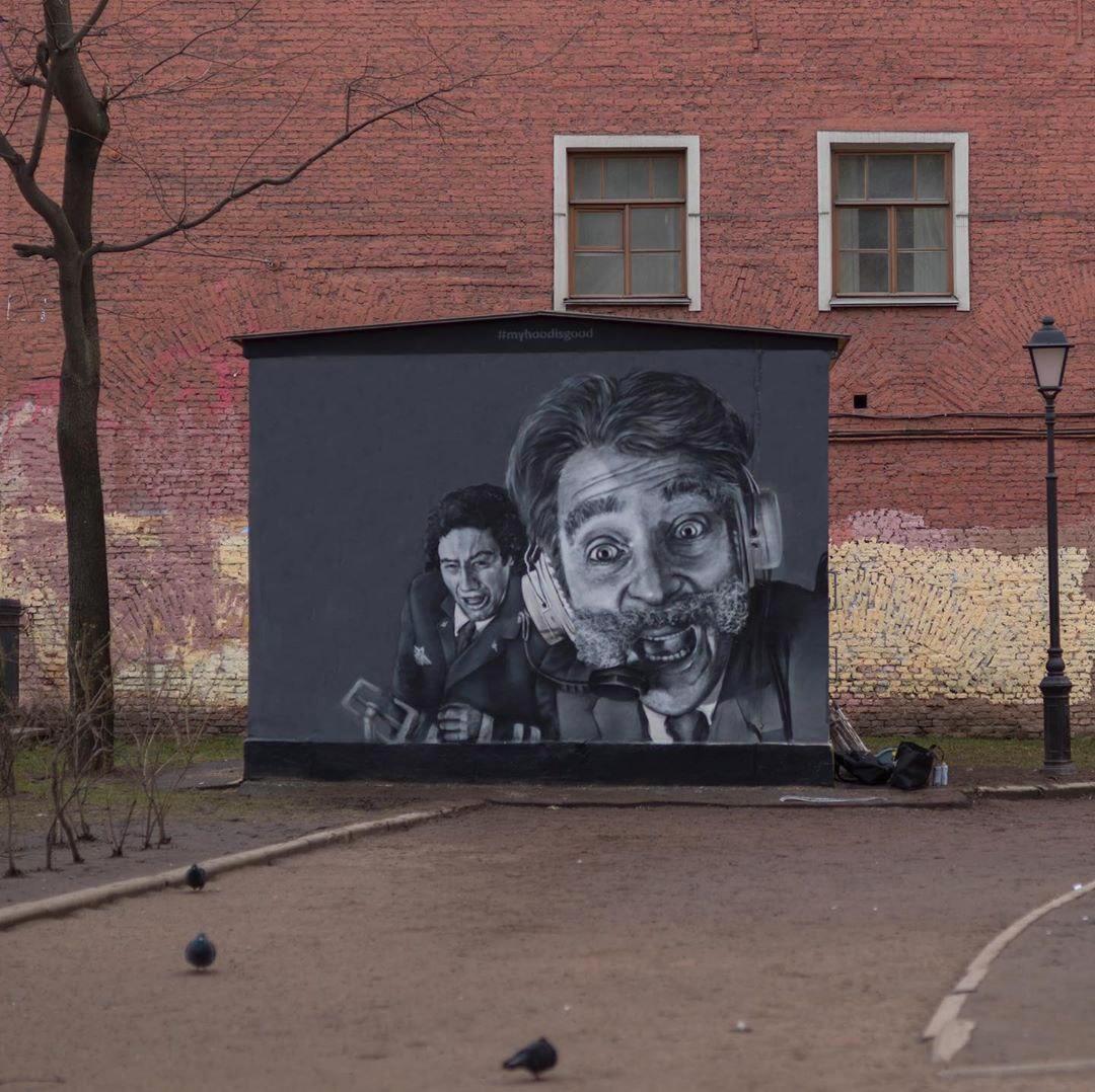 1 квітня на одній з вулиць Санкт-Петербурга з'явилося графіті з українськими акторами Юрієм Стицковським та Олексієм Агопьяном в образах персонажів комедійного тележурнала 90-х "Каламбур".