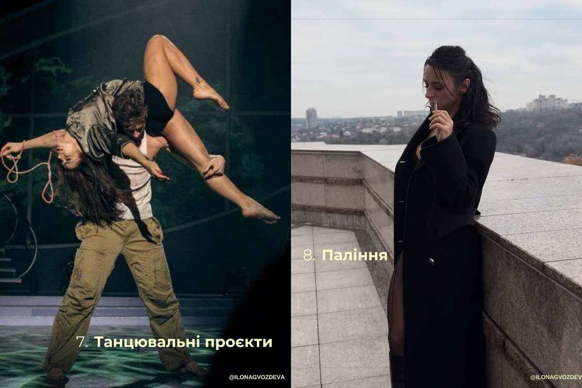 "Хочу бути до вас ближче, тому розкриваю секрети, гортайте карусель і дізнайтеся про мої 10 залежностей. Яка з них про вас?", – звернулася до підписників знаменитість.