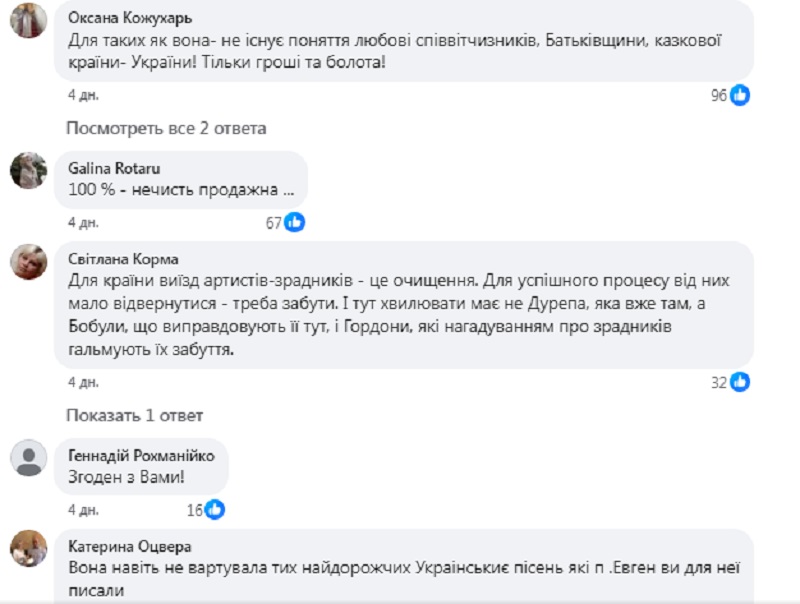 Про "золотй голос України" забули. Її зневажають, як і інших публічних особистостей, які обрали Росію для життя, діяльності та реалізації амбіцій.