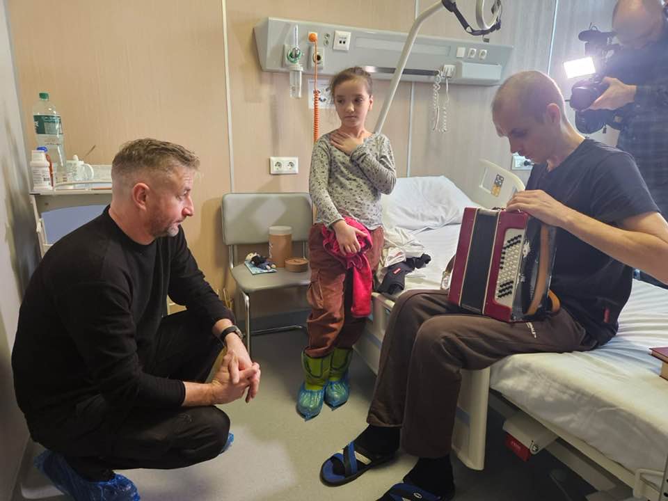 Письменник, музикант, а нині військовий Сергій Жадан, відвідав у лікарні та влаштував концерт для оператора Reuters Івана Любиш-Кірдея, який отримав дуже важкі поранення у Краматорську.