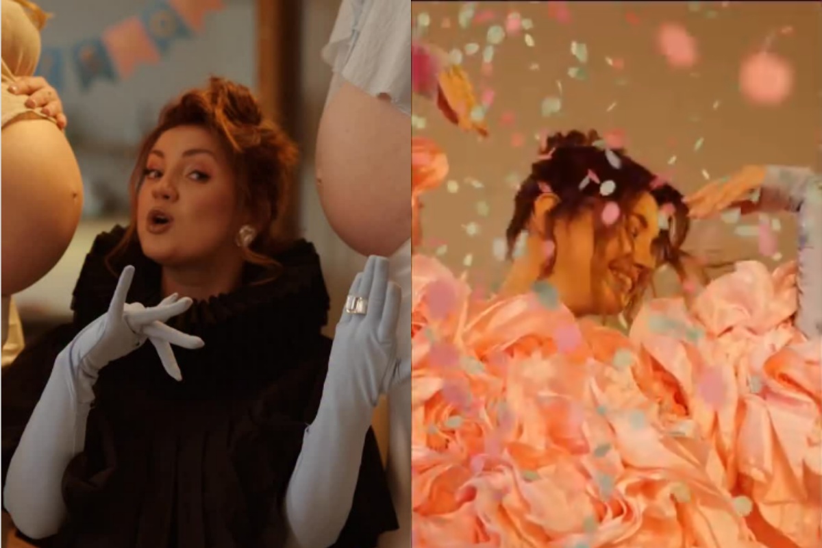 Торкаючись до кругленьких животів, виконавиця заспівала: "Я трохи драма, я трохи мама".