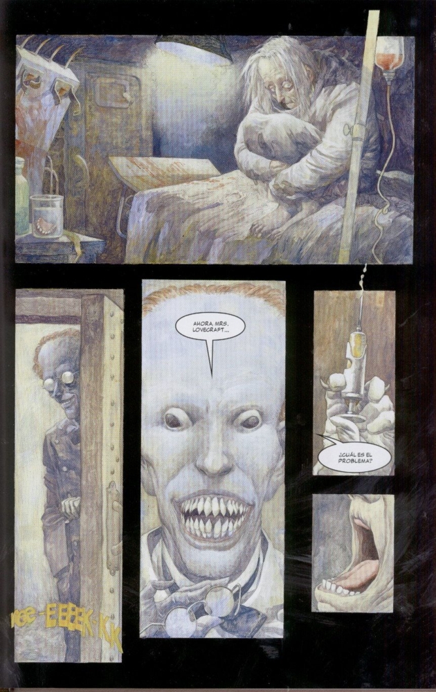 "З раннього дитинства в кінці 1800-х років Лавкрафта переслідували похмурі видіння демонів і смерті. Спійманий в пастку світу моторошних істот і гротескних думок, письменник знайшов вихід, сплітаючи свої живі кошмари в вигадані страшні історії", - йдеться в описі графічного роману Родіонова.