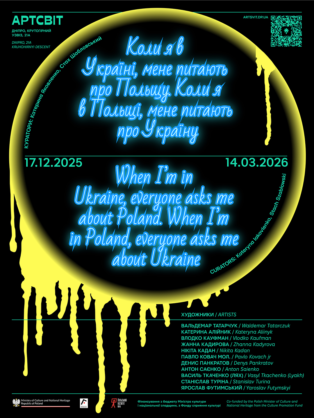 Коли: 17 грудня 2025 – 14 березня 2026. Де: галерея Артсвіт, Крутогірний узвіз 21а, Дніпро, вхід через скляні двері з боку Успенської площі. Вхід вільний.