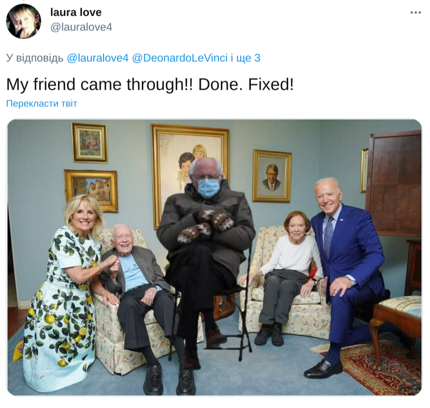 "Ми проголосували за Байдена, бо він порядна людина з розумною політикою, а також тому, що вони з Джилл - гіганти, які розчавлять вас, якщо ви їх розсердите", - пишуть в коментарях. - "Президенти зменшуються в два рази швидше, ніж нормальні люди". "Я не додивився останній сезон "Твін Пікса", тому не знаю, що це за сцена".