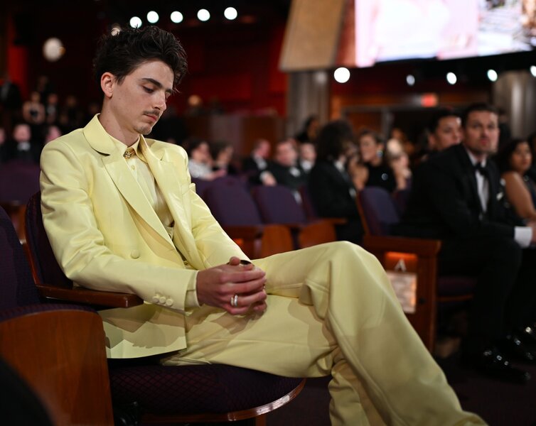 Американський актор, відомий ролями у фільмах "Інтерстеллар" (2014), "Назви мене своїм ім'ям" (2017), "Дюна" (2021) та в його сиквелі (2024), "Вонка" (2023) та інших з'явився на "Оскар" у костюмі ніжного жовтого кольору.