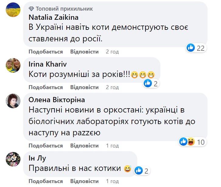 У коментарях люди зазначили, що навіть українські коти знають, як треба поводитися із технікою окупантів і яке її справжнє призначення. Хтось навіть пожартував, що "українці в біологічних лабораторіях готують котів до наступу на РФ".