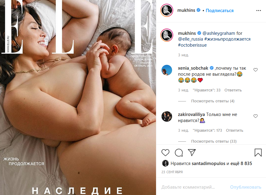 У Росії не ризикнули продавати в оригінальному вигляді свіжий номер журналу Elle Russia, обкладинку якого прикрасила американська плюс-сайз модель Ешлі Грем. У магазини екземпляр надійшов трохи зміненим - половину знімка закриває контурний малюнок.