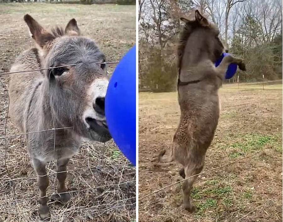 Маленький віслюк з американського Грінвуда дуже любить грати з м'ячиками. Стара іграшка лопнула, і власник улюбленця вирішив зробити йому сюрприз. Напередодні Різдва господар подарував йому новий м'яч і, здається, що щасливішого за цю тварину нікого немає. Ви лишень подивіться на цю непідробну радість.