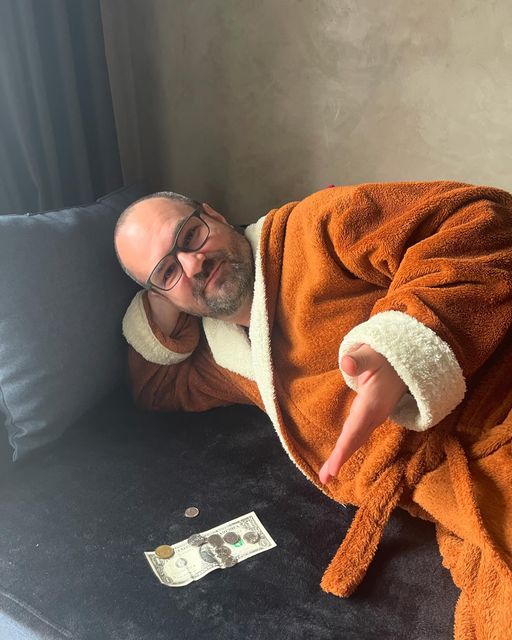 Він вирішив у власному стилі спародіювати фотографію, яка "пішла в меми" після опублікованих співробітниками ДБР результатів обшуків у робочому кабінеті керівниці МСЕК та безпосередньо в будинку. Тоді ж чиновниця намагалась позбутися доказів, викинувши дві сумки з пів мільйоном доларів через вікно.