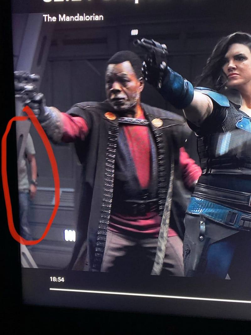Вся справа в тому, що на 19-ій хвилині четвертого епізоду ("Глава 12: Облога") поруч з героями серіалу з'явився хлопець у джинсах та футболці - судячи з усього, член знімальної команди, який не помітив, як перетнув межу дозволеного. За лічені години незнайомець став героєм нових мемів і незабаром навіть може отримати власну фанатську фігурку.