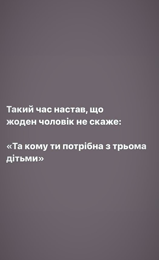 "Такий час настав, що жоден чоловік не скаже: "Та кому ти потрібна з трьома дітьми"".