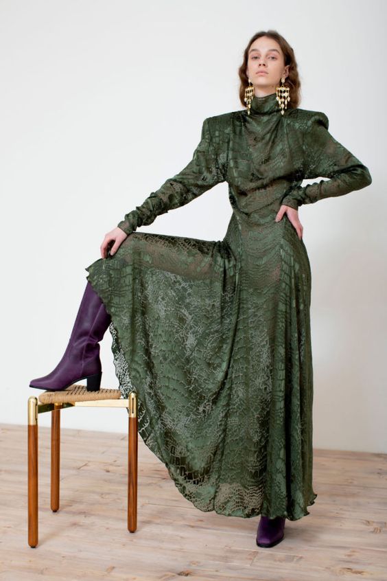 Якщо ж ви хочете виділитися з натовпу, зіграйте на контрасті. Наприклад, під зелену сукню підберіть яскраво-фіолетові чоботи. Доповнити образ можна аксесуаром в тон до чобіт.