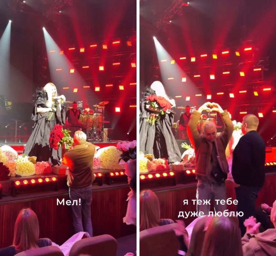 "Мел! А я дивлюсь, о господи, яка краса сидить в залі. Ти дуже талановитий. І я дякую тобі за твою любов. Я знаю, ти казав мені, що дуже любиш. Я теж тебе дуже люблю", - сказала Білик.
