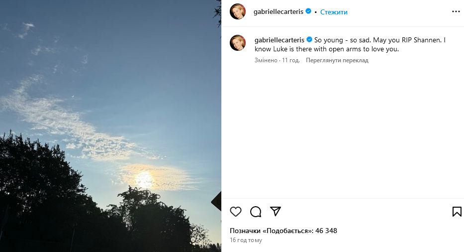 "Така молода - така сумна. Спочивай з миром, Шеннен. Я знаю, що Люк там з розпростертими обіймами, щоб любити тебе", - вшанувала вона пам'ять колеги.