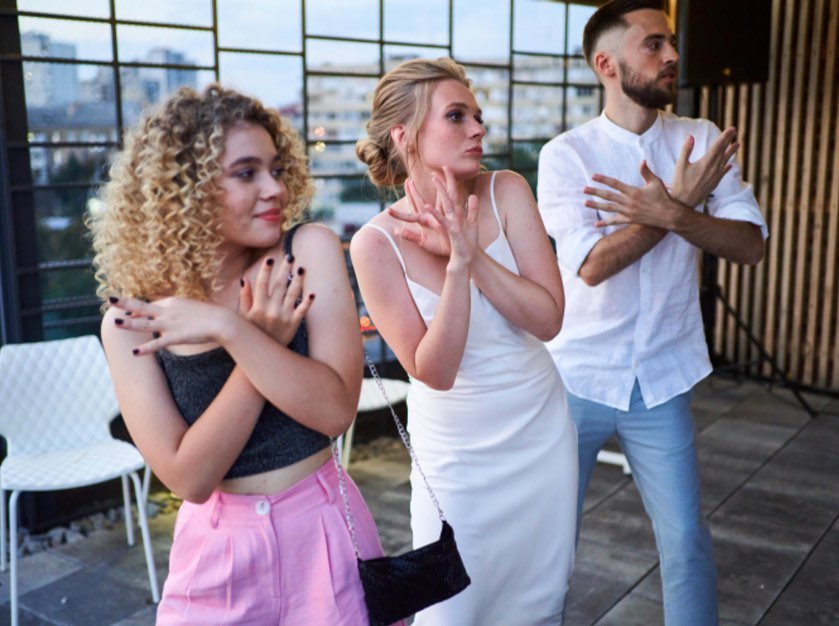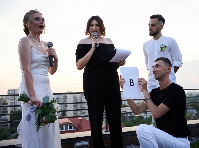 Свято кохання пройшло на панорамному даху одного зі столичних закладів. На вечірці були присутні рідні пари та колеги по "Лізі Сміху". Без гумору, як ви розумієте, тут не обійшлося.