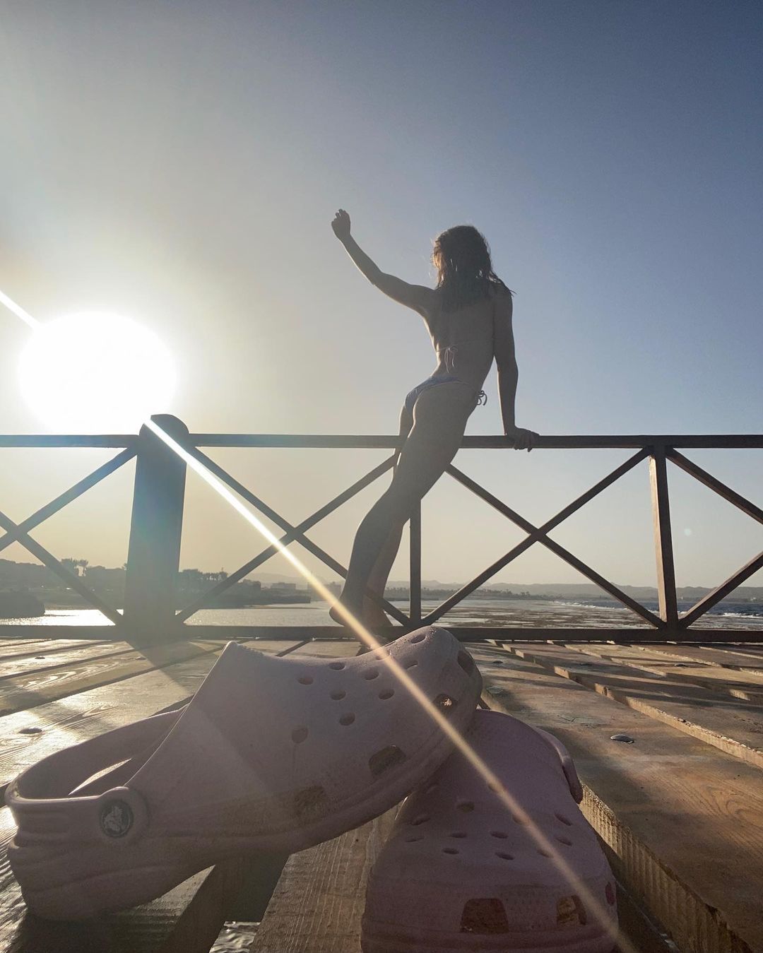 Кадрами з відпустки 24-річна акторка ділиться в Instagram. На одному зі знімків дівчина позує в бікіні, спершись на перила. Фотографія зроблена зі спини, оскільки Поплавській ще заборонено показувати себе справжню. Підписувати фото Ірина не стала.