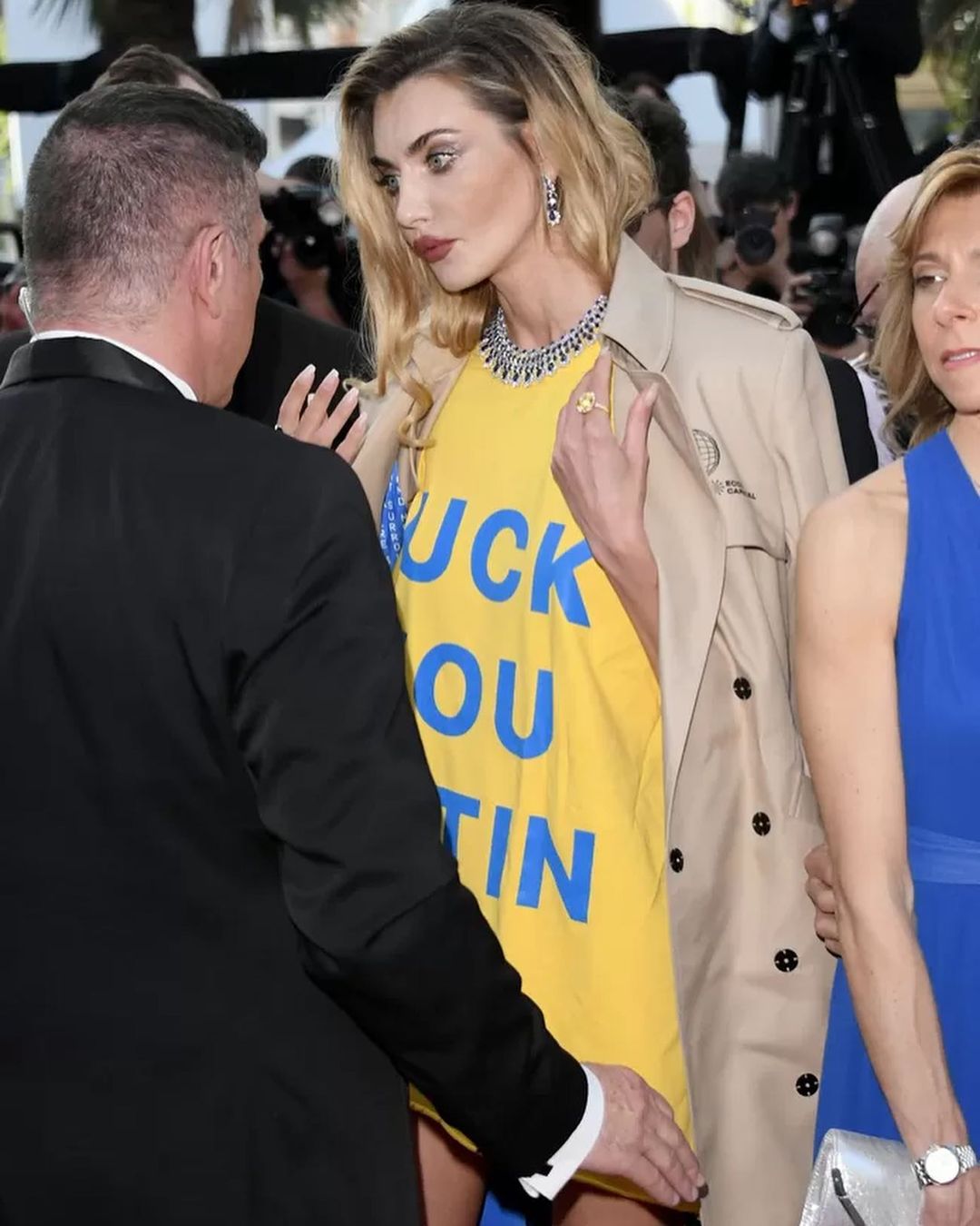 На особистій сторінці в Instagram супермодель розповіла, що її перформанс закінчився арештом та проханням залишити доріжку, оскільки фестиваль "не хоче бути політичним".