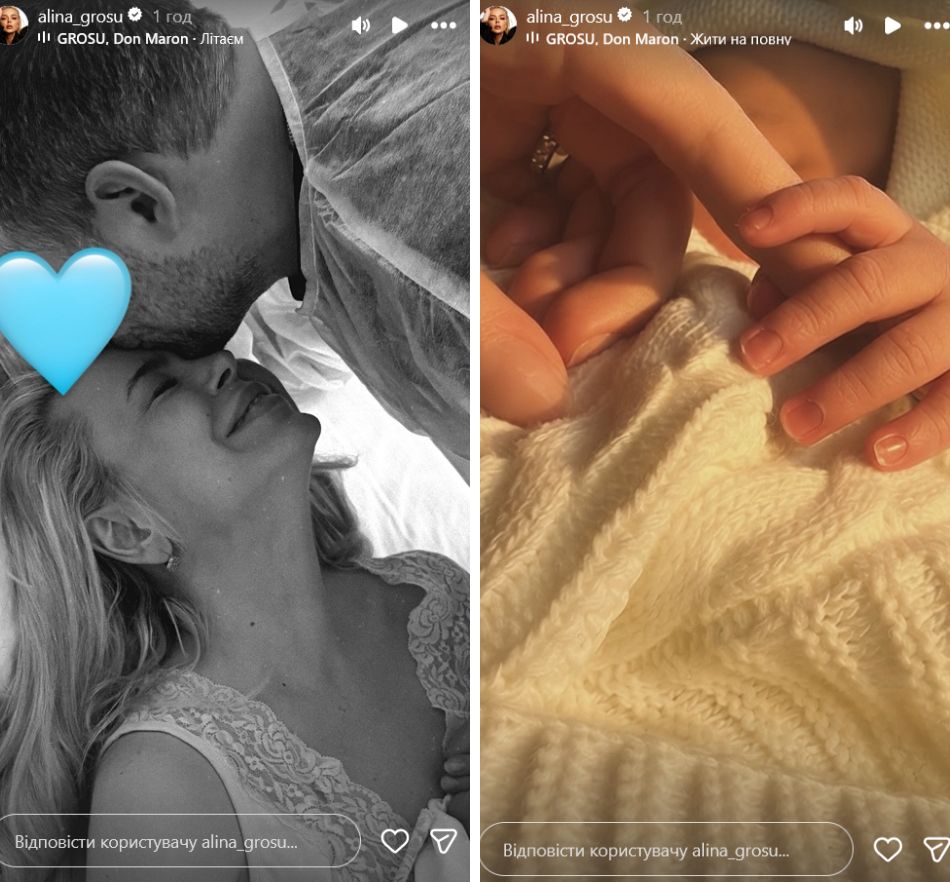 У сторіз Гросу показала фото з батьком дитини, обличчя якого досі приховує, а також зворушливий знімок крихітних пальчиків немовляти.