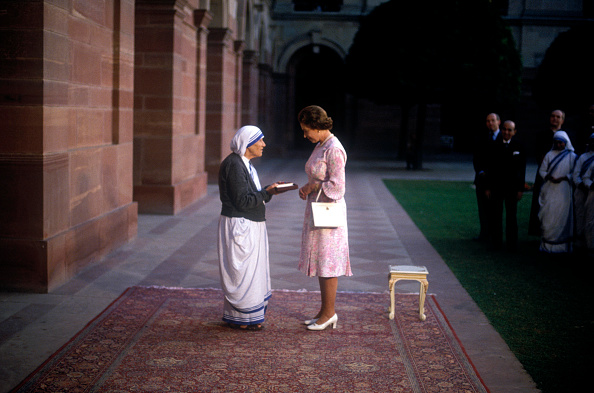 мати Тереза і британська королева Єлизвета II, 1983 рік, Делі, Індія.