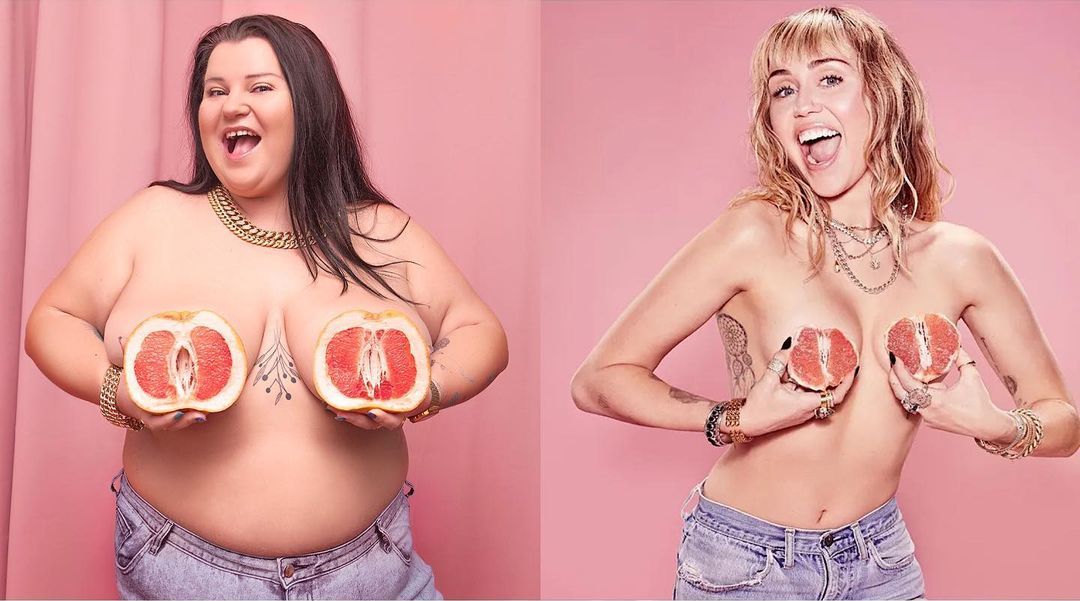 На свіжому фото пишнотіла виконавиця повторила образ Майлі Сайрус, яка позувала топлес, прикривши голі груди двома половинками грейпфрута. Що правда, українській зірці знадобилися фрукти дещо більші.