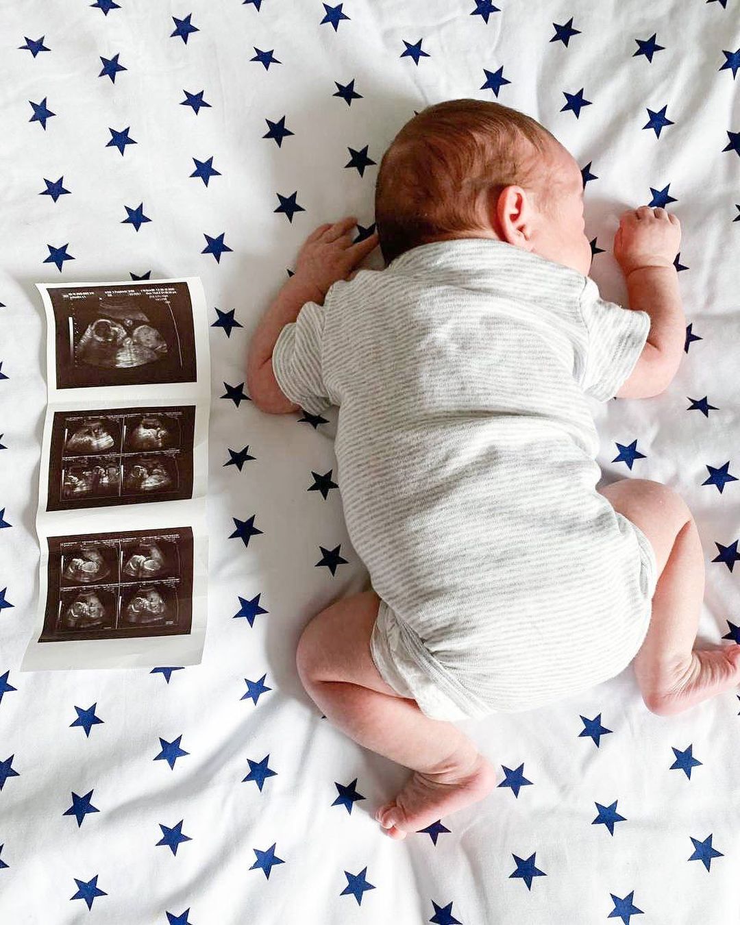 Познайомити фанів з сином артистка вирішила через місяць після пологів. Вона опублікувала в Instagram милу фотографію малюка поруч з яким лежать внутрішньоутробні знімки. Правда, обличчя крохи Анастасія вирішила поки не показувати.