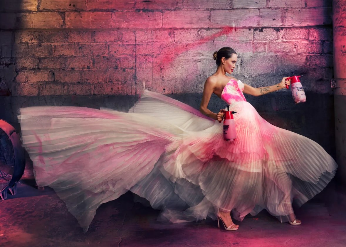 На одному із фото Джолі позувала у ніжно-рожевій зефірній сукні, тримаючи у руках балончики із фарбою. Доповнили яскравий образ зібране на потилиці волосся, босоніжки на підборах та виразний макіяж. На іншому фото акторка постала у сукні красивого золотистого відтінку, яку вона скомбінувала із коричневою накидкою. Зірка позувала босоніж, із розпущеним волоссям та невеликою кількістю макіяжу.
