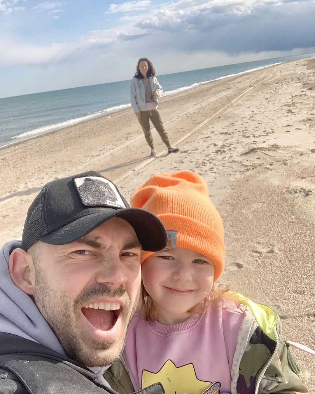 Андрій Бєдняков із дочкою та дружиною у Маріуполі