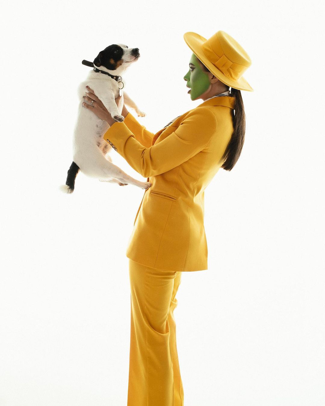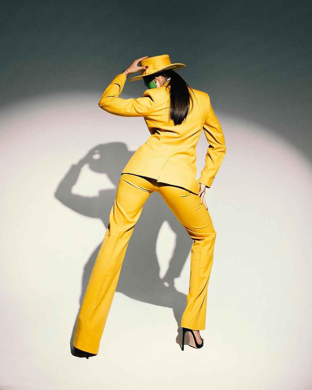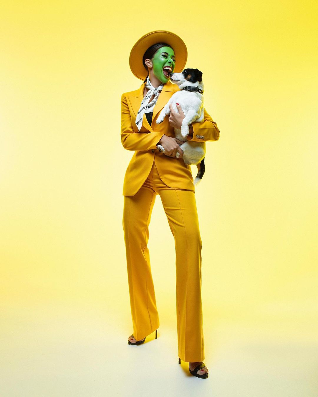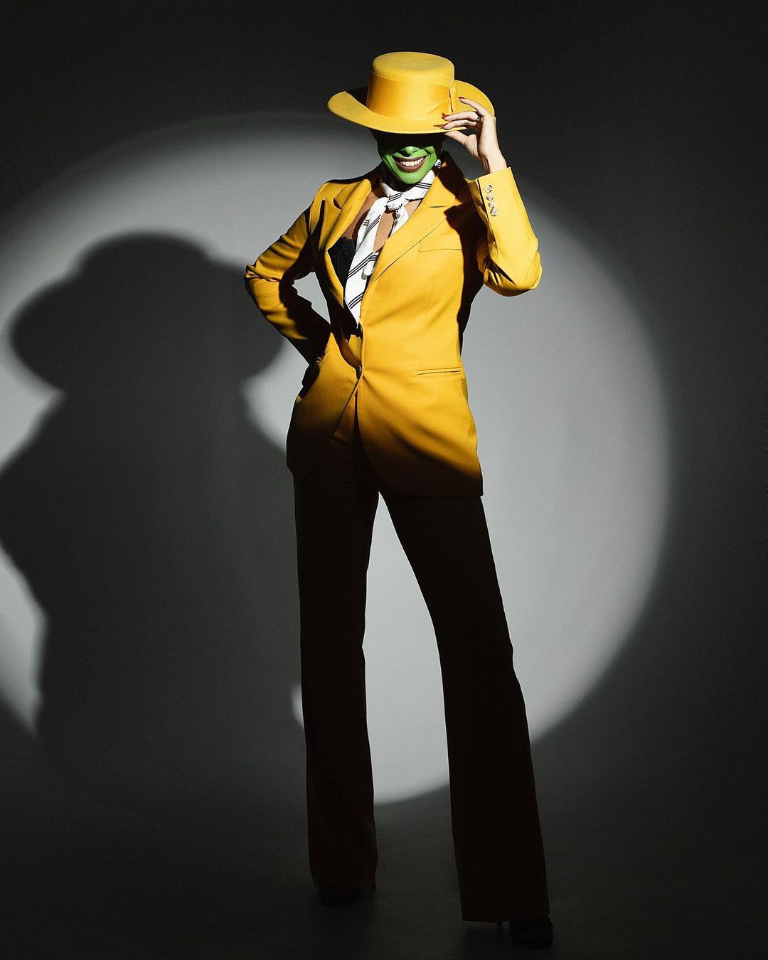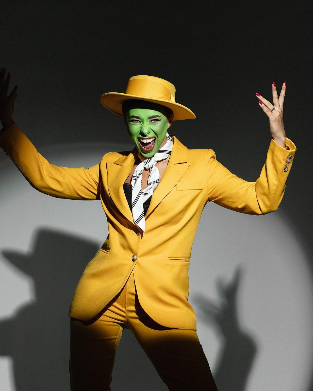 "Це не зйомка, це пожежа", - написала Неплях в описі до серії фото, де позувала в новому амплуа. Знаменитість з'явилася у жовтому брючному костюмі, чорному топі, босоніжках на підборах, а завершували аутфіт атласна хустка на шиї в чорно-білих тонах, капелюх та сама зелена Маска – така, яку носив Керрі у фільмі.