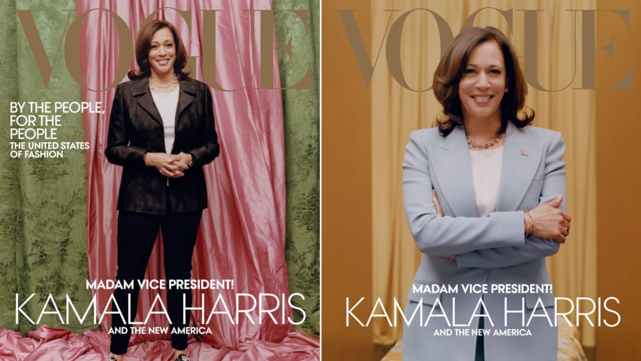 На знімку фотографа Тайлера Мітчелла Харріс стоїть на тлі рожево-зеленого драпірування в коричневому жакеті, чорних джинсах і кедах. Критикам не сподобалося освітлення і стиль обраного віце-президента, а джерело сказало ЗМІ, що команда Харріс очікувала побачити на обкладинці інше фото - портрет в блакитному костюмі на золотому фоні.