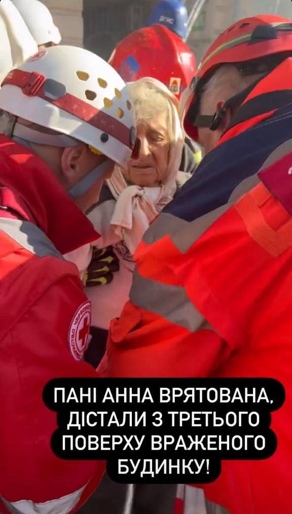 Серед людей, які вижили у зруйнованому "шахідами" будинку, опинилася бабуся українського ведучого Олександра Вишневського. Саме її фото опублікував заступник голови Офісу президента Кирило Тимошенко. "Пані Ганна – врятована! Дістали з третього поверху враженого будинку", – написав він.